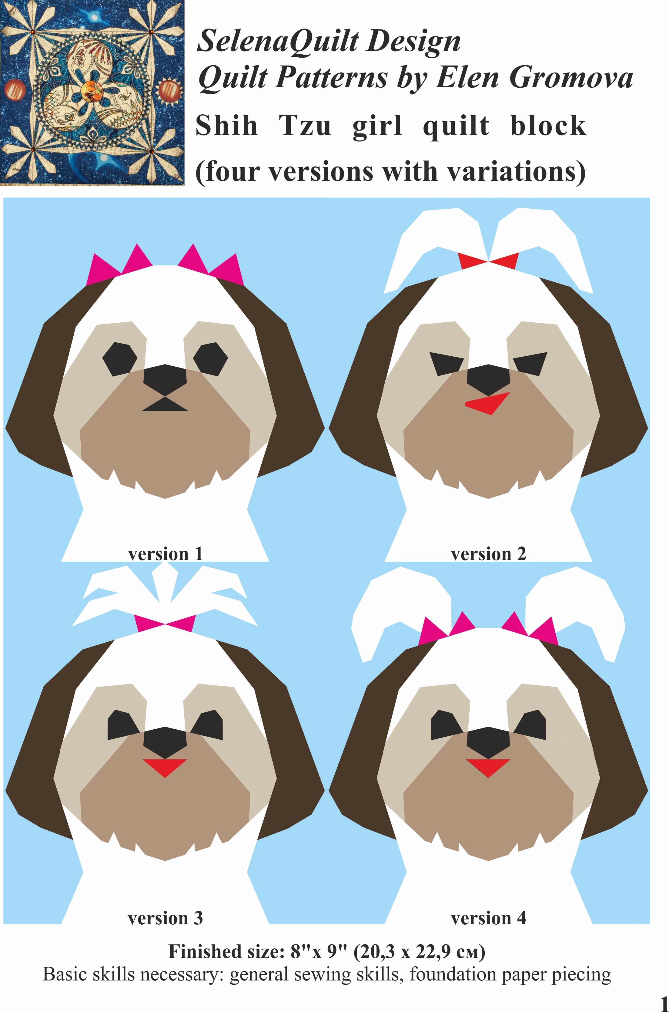 Shih Tzu Girl Quilt Block Pdf Pattern 4 Versions Inspire Uplift